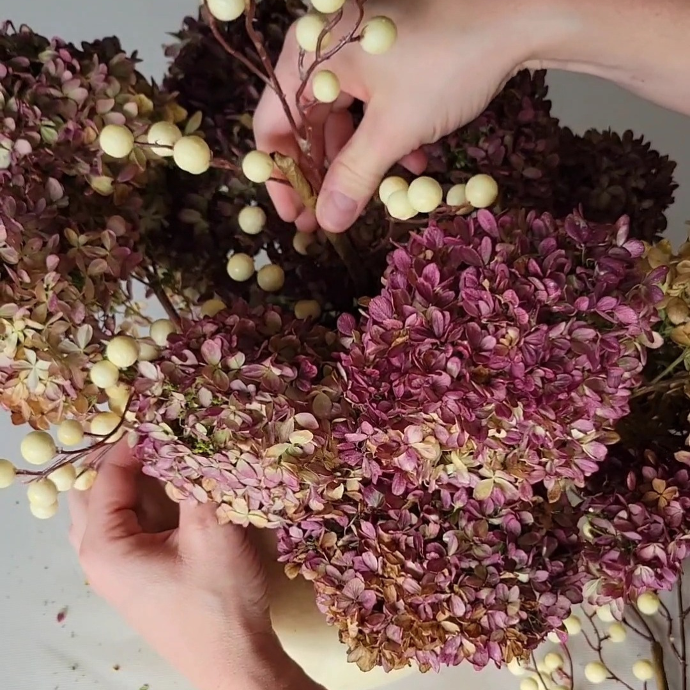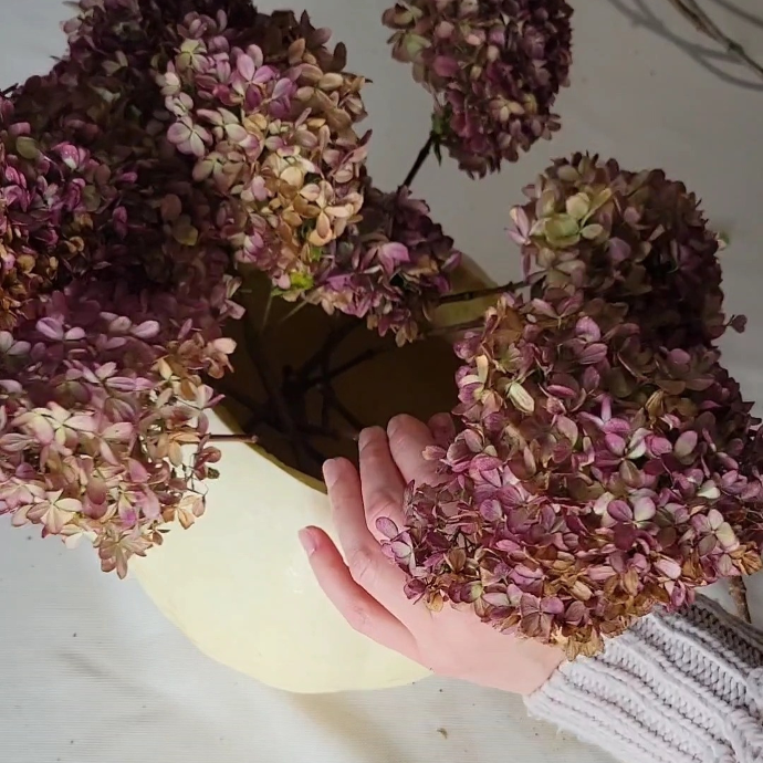 C'est le moment d'installer vos fleurs séchées à l'intérieur de la citrouille! Allez-y à l'oeil pour les disposer uniformément.