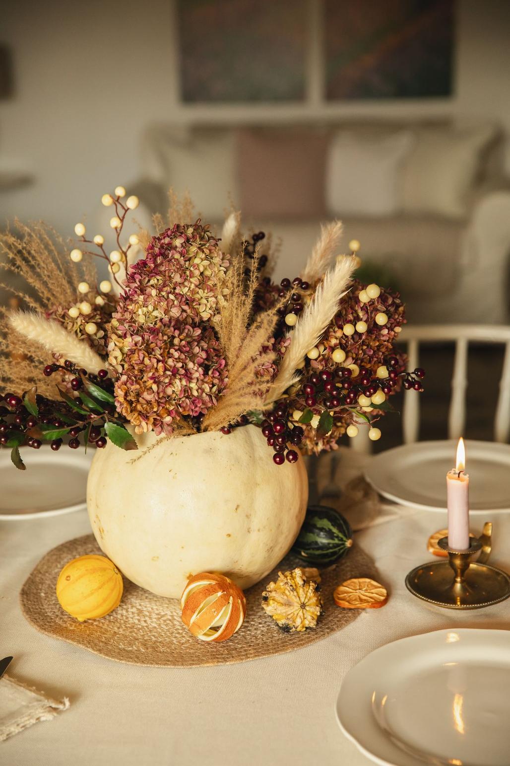 Non seulement cette décoration est hyper simple à réaliser, mais c'est aussi une belle activité pour se mettre dans l’esprit de l’automne. Créer un centre de table automnal et décoratif à partir d’une citrouille est une façon créative de redonner vie aux citrouilles une fois l'Halloween passée. C’est une décoration éphémère, mais qui apporte une belle touche de nature à votre décoration!