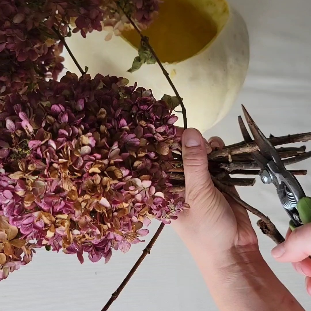 Assurez-vous de couper les tiges de vos fleurs séchées dans le cas où elles sont trop longues pour la profondeur de votre citrouille.