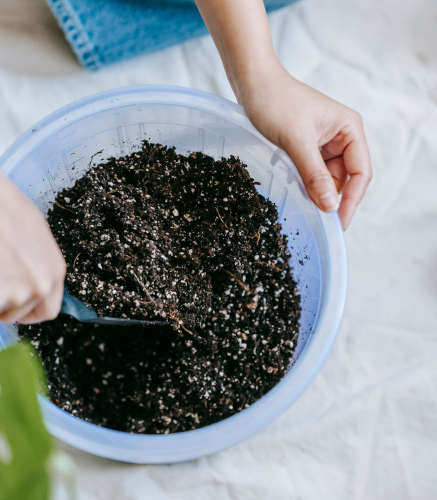 Un engrais à libération lente mélangé au terreau lors du rempotage.